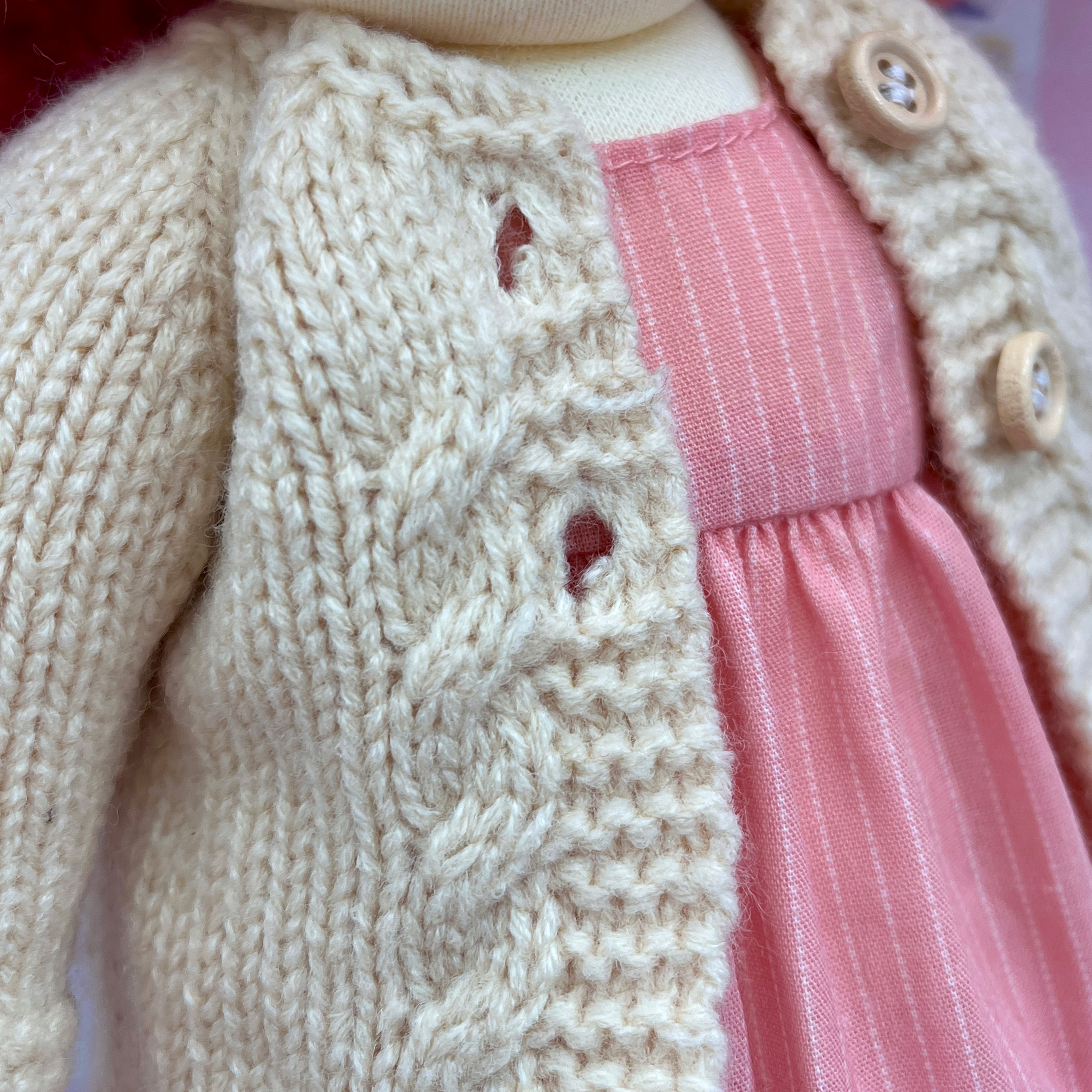 The key to caring for a Waldorf doll is avoiding excessive washing, keeping it dry, and handling it gently. If it gets dirty, use spot cleaning whenever possible instead of full washing. Store the doll in a well-ventilated, dry place, and avoid damp or sunny environments. If the stuffing loses shape or seams come loose, you can easily repair it by hand to keep your doll looking beautiful for years to come! ✨